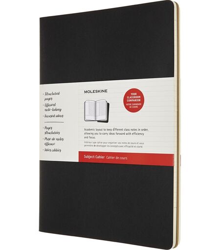 Moleskine - legendarisk og tidløst håndværk fra MilanoMoleskine er enestående og tidløst håndværk og design, i en kvalitet, som du kan stole på. Det italienske luksusmærke er særligt kendt for sine legendariske notesbøger, men Moleskine laver også penne og kalendere i sin karakteristisk elegante og tidløse stil. Der er altså en grund til, at bl.a. forfattere, kunstnere, intellektuelle og rejsende foretrækker Moleskine. Vincent van Gogh, Pablo Picasso og Ernest Hemingway udtænkte store værker med en Moleskine notesbog i hænderne – og nu kan du gøre det samme.Moleskine Cahier Subject NotebookMed sit enkle og underspillede design, er Moleskine Cahier serien en favorit hos dem, som tager mange noter. Moleskine Cahier notesbøgernes papomslag gør dem oplagte at personliggøre – skriv dit yndlingscitat, mal et portræt eller et landskab, eller giv din notesbog et navn. Cahier Subject er struktureret i et layout, der hjælper dig til at fokusere på dine ideer og få mest muligt ud af lektioner. Designet er perfekt til at tage noter på og hver side er indelt i 5 sektioner; dato, titel, noter, nøgleord og en boks til opsummering, konklusioner og næste skridt.Notesbogens slidstærke og robuste materialer indikerer, at den er designet til at blive brugt dag efter dag, indtil alle sider er udfyldt. Moleskine Cahier notesbøgerne er lette og meget fleksible. Den sanselige og rå overflade med tydelig bomuldstråd hvor siderne er syet sammen giver notesbogen et naturligt, håndlavet udtryk. Det gør det til en helt særlig oplevelse at skrive i en Moleskine Cahier notesbog. Notesbogens sidste 16 sider er perforerede, så de nemt kan tages ud. Notesbogen indeholder desuden en klap, som kan bruges til f.eks. løse papirer, bonner og visitkort.Moleskine Cahier Subejct notesbøgerne sælges i sæt a 2 stk.Moleskine farver: Black og Kraft BrownMoleskine størrelse: A4Mål: 21 x 29,7 cmInddelt i subject-layoutBlødt omslag160 siderSyrefrit papir, 70 gIndeholder 2 stickersark ...