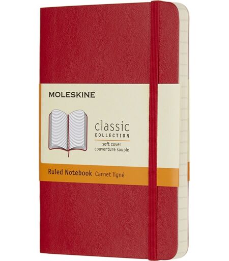 Moleskine - legendarisk og tidløst håndværk fra MilanoMoleskine er enestående og tidløst håndværk og design, i en kvalitet, som du kan stole på. Det italienske luksusmærke er særligt kendt for sine legendariske notesbøger, men Moleskine laver også penne og kalendere i sin karakteristisk elegante og tidløse stil. Der er altså en grund til, at bl.a. forfattere, kunstnere, intellektuelle og rejsende foretrækker Moleskine. Vincent van Gogh, Pablo Picasso og Ernest Hemingway udtænkte store værker med en Moleskine notesbog i hænderne – og nu kan du gøre det samme.Moleskine Classic Soft Cover Notesbog i pocket str. med linjeret papirMoleskine Classic serien består af enkle, men klassiske notesbøger med særlige kendetegn, som smukt afrundede hjørner og en smart elastiklukning. Det syrefri cremefarvede papir absorberer blæk uden at det løber igennem på den modsatte side og du kan viske blyant ud mange gange, uden at papiret bliver nusset. Moleskine Classic Soft Cover notesbøgerne har et fleksibelt men robust omslag, som kan tilpasse sig kroppens bevægelser og derfor passe i enhver lomme. Tag den med dig rundt omkring og fyld den med dine unikke ideer, noter, tanker og kruseduller. Du bestemmer hvad du fylder de blanke sider med.Notesbogens slidstærke og robuste materialer indikerer, at den er designet til at blive brugt dag efter dag, indtil alle sider er udfyldt. Moleskine Classic notesbøger indeholder et bogmærkebånd og en ekspanderbar lomme på sidste side, som kan bruges til f.eks. løse papirer, bonner og visitkort. Moleskine farve: RedMoleskine størrelse: PocketMål: 9 x 14 cmLinjeretBlødt omslag192 siderSyrefrit papir, 70 gBogmærkebåndHoldes lukket med elastikMoleskine logo på bagsiden ...
