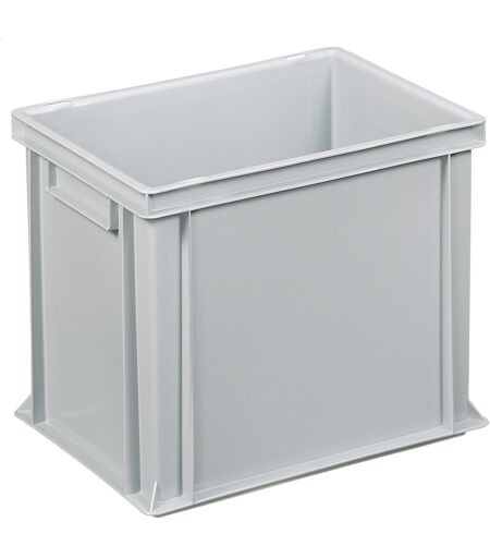 Højkvalitetskasse i plastik, der kan stables Lukket håndtag Lukket bund og sider Tilpasset EUR-paller Udvendige mål i mm (LxBxH): 400x300x320 Indvendige mål i mm (LxBxH): 355x255x315 Frost og varme bestandig (-20 til +80 grader) Resistent overfor de fleste syrer og olier Kapacitet: 31 liter Fremstillet af genanvendeligt materiale ...