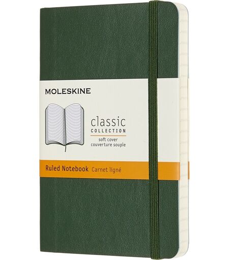 Moleskine - legendarisk og tidløst håndværk fra MilanoMoleskine er enestående og tidløst håndværk og design, i en kvalitet, som du kan stole på. Det italienske luksusmærke er særligt kendt for sine legendariske notesbøger, men Moleskine laver også penne og kalendere i sin karakteristisk elegante og tidløse stil. Der er altså en grund til, at bl.a. forfattere, kunstnere, intellektuelle og rejsende foretrækker Moleskine. Vincent van Gogh, Pablo Picasso og Ernest Hemingway udtænkte store værker med en Moleskine notesbog i hænderne – og nu kan du gøre det samme.Moleskine Classic Soft Cover Notesbog i pocket str. med linjeret papirMoleskine Classic serien består af enkle, men klassiske notesbøger med særlige kendetegn, som smukt afrundede hjørner og en smart elastiklukning. Det syrefri cremefarvede papir absorberer blæk uden at det løber igennem på den modsatte side og du kan viske blyant ud mange gange, uden at papiret bliver nusset. Moleskine Classic Soft Cover notesbøgerne har et fleksibelt men robust omslag, som kan tilpasse sig kroppens bevægelser og derfor passe i enhver lomme. Tag den med dig rundt omkring og fyld den med dine unikke ideer, noter, tanker og kruseduller. Du bestemmer hvad du fylder de blanke sider med.Notesbogens slidstærke og robuste materialer indikerer, at den er designet til at blive brugt dag efter dag, indtil alle sider er udfyldt. Moleskine Classic notesbøger indeholder et bogmærkebånd og en ekspanderbar lomme på sidste side, som kan bruges til f.eks. løse papirer, bonner og visitkort. Moleskine farve: Myrtle GreenMoleskine størrelse: PocketMål: 9 x 14 cmLinjeretBlødt omslag192 siderSyrefrit papir, 70 gBogmærkebåndHoldes lukket med elastikMoleskine logo på bagsiden ...