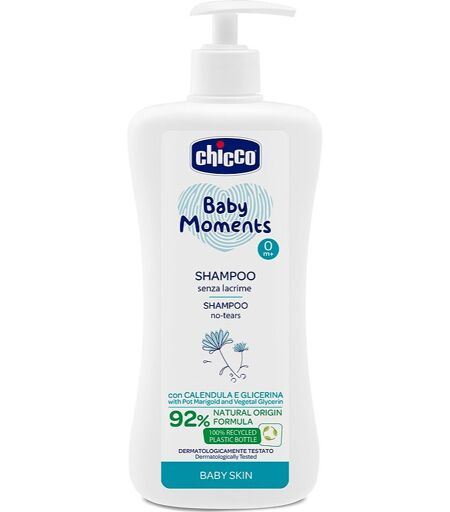 Chicco Baby Moments, 500 ml, Shampooer til børn til børn, Den regelmæssige hårvask behøver ikke længere at være en frygtet pligt for dig og dine børn, men kan være en behagelig oplevelse, hvor dit barns hår får den fineste pleje. Shampooen Chicco Baby Moments hjælper med at vaske håret og fjerne snavs fra håret og børns sensitive hovedbund, så de ikke bliver hverken udtørret eller irriteret. Den plejer dem blidt under hårvask og gør håret blødt og duftende. Egenskaber: vasker barnets hår skånsomt gør det nemmere at rede fint hår ud renser huden svier ikke i øjnene Brugsvejledning: Påfør i håret, skum op, og skyl grundigt. ...
