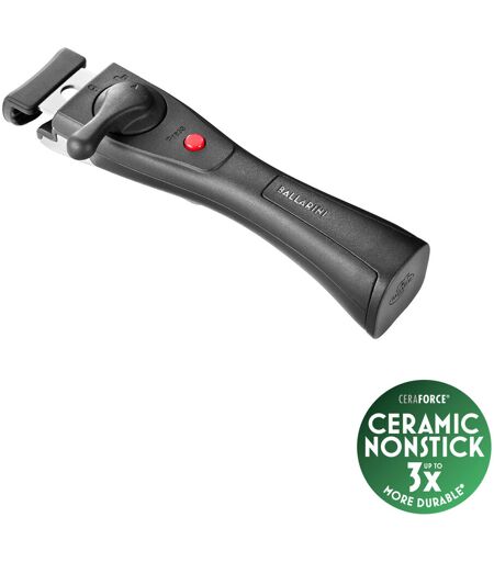 BALLARINI Torre revolutionerer dit køkken. Det aftagelige pandehåndtag har en imponerende bæreevne på op til 10 kg og er et alsidigt supplement til dit køkkenudstyr. Håndtaget giver dig mulighed for nemt og fleksibelt at bruge alle dine pander på alle komfurtype – alt sammen med et enkelt greb. Takket være silikoneclipsen beskytter det aftagelige gryde- og pandehåndtag dit kogegrej mod grimme ridser og skader. Madlavningen bliver ikke kun nemmere, men også mere skånsom for dit kogegrej. Den sande magi ved Torre viser sig dog efter madlavningen: Det har aldrig været nemmere at opbevare og stable dit kogegrej. Det aftagelige pandehåndtag gør det muligt at stable dit kogegrej, så det sparer plads og skaber orden i køkkenet. På den måde får du mere plads til andre vigtige køkkenredskaber og kan udnytte dit køkken optimalt. Kan belastes med op til 10 kg. Silikoneclipsen forhindrer, at panderne bliver beskadiget eller ridset. Gør det nemt at opbevare og stable dit kogegrej. Innovativ funktionalitet kombineret med kvalitetsmaterialer. Langtidsholdbar Ceraforce® Granitium keramisk belægning, op til tre gange mere holdbar end vore tidligere keramiske belægninger*. Den strålingsfølsomme induktionsbund sikrer en hurtig og jævn varmefordeling. Nem opbevaring og stabling af dit kogegrej. Fremstillet uden PFAS ...