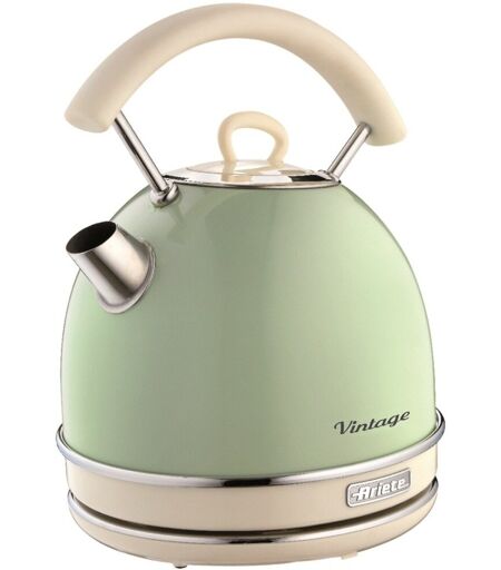 Den runde kedel 2877GR/04 Vintage Green fra Ariete er et designkomfur i en klassisk tekedelform, der bringer nostalgi ind i køkkenet med sin unikke form og pastelfarve. Elkedlen med en kapacitet på 1,7 liter er kendetegnet ved de buede retrolinjer og et robust design: ydervæggene i rustfrit stål i pastelfarver gør den til et unikt og umiskendeligt køkkenapparat. Vintage-linjen kombinerer italiensk design med brugervenlighed. Den 360° trådløse base giver dig mulighed for at fjerne elkedlen og bringe den direkte til bordet for at tilberede drikkevarerne. Takket være de isolerede vægge, der gør det muligt at bære elkedlen komfortabelt og placere den på enhver overflade uden for bunden, det ergonomiske håndtag og det automatiske sluk-system, er dette komfur en sikker og brugervenlig ledsager. ...