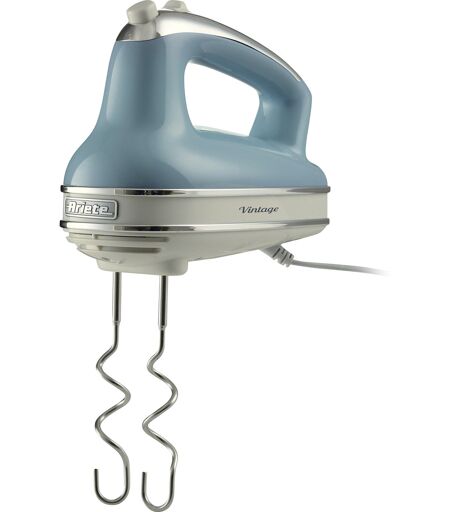 Den Vintage Sky blå håndmixer med Arietes umiskendelige vintage-design tilbereder søde og salte opskrifter til voksne og børn, dej til kager, brød, pizza og flødeskum. Motoren på 450 watt, fem hastighedsindstillinger og turbofunktionen sikrer en blød blanding, der er nem at arbejde med. Vintage Blender er for eksempel med sit piskeris lige noget til piskefløde eller marengs. Pizzaelskere kan bruge dejkrogene til pizza, brød eller blød focacciadej. Ariete fremstiller ikoniske og funktionelle produkter, vintage-linjen kombinerer italiensk design med brugervenlighed. ...