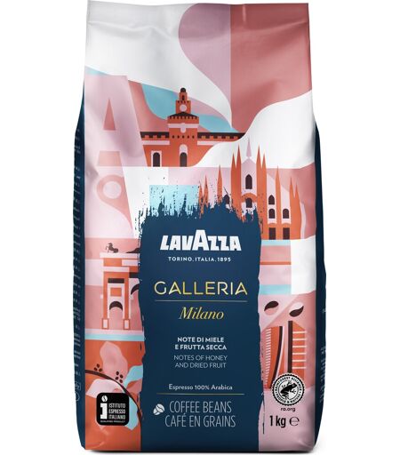 Lavazza Tales of Italy Galleria Espresso – Aromatisk 100% Arabica med noter af honning og rosin Forkæl sanserne med Lavazza Galleria Espresso – en elegant 100% Arabica-blanding inspireret af Norditaliens caféer og livlige stemning. Kaffen er beriget med Cereja Apassita-bønner, som tilfører en fyldig sødme og giver delikate noter af honning og rosin i hver eneste kop. Bønnerne er nøje udvalgt fra bjergområder i Mellemamerika, Sydamerika og Afrika og skaber en aromatisk kaffe med en blød og balanceret eftersmag. Den lyse ristning fremhæver kaffens naturlige sødme og frugtige nuancer – perfekt til både espresso og mælkebaserede kaffedrikke. Fra Rainforest Alliance-certificerede landbrug sikrer denne kaffe respekt for plantagerne og støtte til kaffedyrkende lokalsamfund. Lavazza Tales of Italy Gallaria Espresso erstatter den tidligere Top Class Filtro, kaffen er fremstillet på samme bønner, men har fået en lidt lysere ristning for en mere rund og mild smagsoplevelse. Indhold: 1 kg hele bønner Bønnetype: 100% Arabica Smagsnoter: Honning og rosin Smagsprofil: Aromatisk Oprindelse: Bjergene i Mellemamerika, Sydamerika og Afrika Ristning: Lys Anbefalet brygning: Espresso, mælkedrikke Certificering: Rainforest Alliance ...