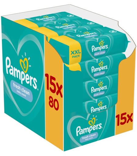 Pampers Fresh Clean Vådservietter til børn til sensitiv hud 15x80 stk.