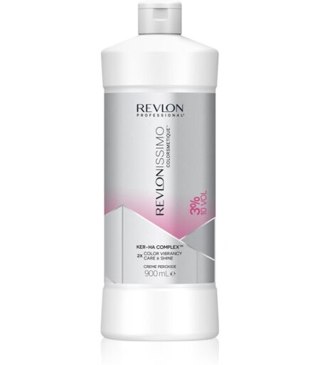 Revlon Professional Revlonissimo Creme Peroxide, 900 ml, Hårfarve udviklere til kvinder , Aktiverende emulsion er et uundværligt præparat til permanente og semi-permanente hårfarver. Egenskaber: virker som et oxidant middel ved hårfarvning sikrer dækning og lysner samtidigt med nogle nuancer forlænger farvens intensitet resultatet er en farve fuld af glans professionelt præparat til brug i frisørsaloner hjælper til med at sikre en jævn dækning af farven til en perfekt dækning af grå stænk Brugsvejledning: Følg vedlagte manual. Det drejer sig om et professionelt hårprodukt, som kun skal bruges i frisørsaloner. ...