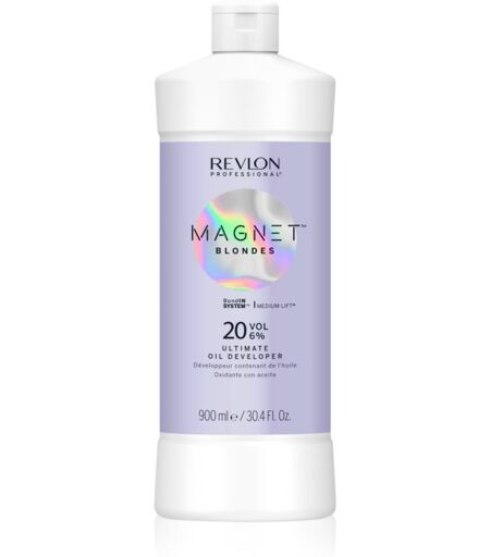 Revlon Professional Magnet Blondes Ultimate Oil Developer, 900 ml, Hårfarve udviklere til kvinder , Aktiverende emulsion er et uundværligt præparat til permanente og semi-permanente hårfarver. Egenskaber: virker som et oxidant middel ved hårfarvning Brugsvejledning: Bland i de korrekte forhold med hårfarven. Undgå kontakt med øjnene. Skyl omgående grundigt med vand ved kontakt med øjnene. Opbevares utilgængeligt for børn. Brug passende beskyttelseshandsker. Følg vedlagte manual. Det drejer sig om et professionelt hårprodukt, som kun skal bruges i frisørsaloner. ...