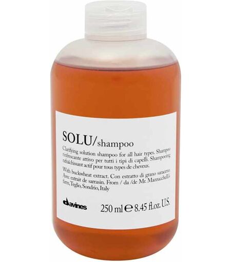 Davines SOLU Shampoo er en dybderensende shampoo, som effektivt fjerner rester af produkter og styling. Den har en forfriskende formular som efterlader håret rent, friskt og med en skøn lethed. Shampooen er beriget med boghvede ekstrakter, som har en plejende effekt på håret.Davines SOLU Shampoo er fri for sulfater og parabener, og er velegnet til alle hårtyper. Fordele: Dybderensende shampoo Fjerner rester af styling og produkter Med boghvede ekstrakter Velegnet til alle hårtyper Fri for sulfater og parabener Anvendelse: Fordel shampooen i fugtigt hår Massér til det skummer Skyl grundigt Gentag hvis nødvendigt ...