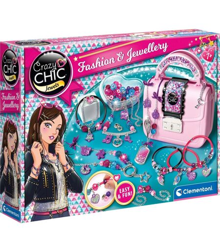 Fashion & Jewelry by Clementoni inkluderer en taske, der kan bygges, og tonsvis af materialer, så du kan være kreativ med at skabe og personliggøre smykker. Inkluderet er perler, halskæder, vedhæng og mange andre elementer - alt kan opbevares i tasken for at spare plads. ...