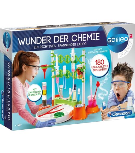 Et sæt til fantastiske kemieksperimenter! Et laboratorium for spirende videnskabsmænd til at udføre over 180 eksperimenter og opdage kemiens hemmeligheder i fuld sikkerhed. Sættet indeholder mange stoffer til at eksperimentere med fantastiske kemiske reaktioner og opnå utrolige effekter! Alle eksperimenter er beskrevet ved hjælp af billeder med klare og detaljerede forklaringer og opsummeret i en brugsanvisning, der gør kemi til et sjovt spil. ...