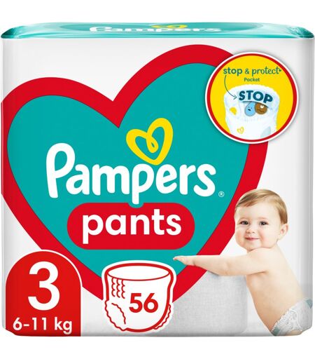 Pampers Pants Size 3 buksebleer til engangsbrug 6-11 kg 56 stk.