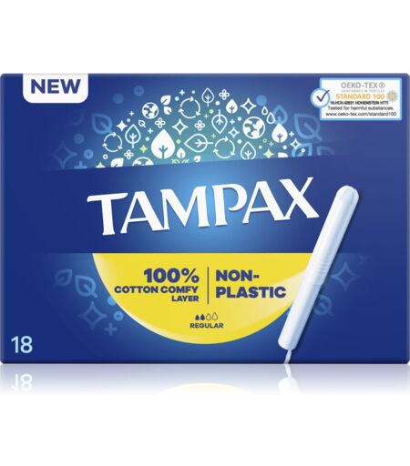 Tampax Regular, 18 stk., Tamponer til kvinder , Vil du føle dig godt tilpas og fri i løbet af dine dage? Tamponer Tampax Regular sikrer dig den maksimale beskyttelse og giver dig en følelse af komfort og sikkerhed, så du næsten glemmer din periode. Egenskaber: en ideel størrelse til dage med let blødning tilpasser sig kropsbevægelser absorberende strimmel til en pålidelig beskyttelse riller i mange retninger, der øger tamponens kapacitet kan bruges, mens du svømmer i poolen der medfølger en papirapplikator til hygiejnisk og nem indføring Brugsvejledning: Følg anvisningen på indlægssedlen. ...