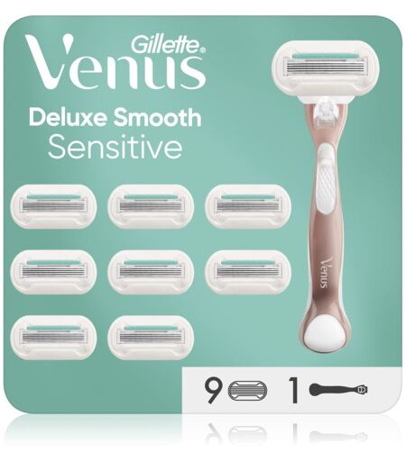 Gillette Venus Deluxe Smooth Sensitive Barberkniv + erstatningshoveder 9 stk.