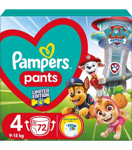 Pampers Pants Paw Patrol Size 4 buksebleer til engangsbrug 9-15 kg 72 stk.
