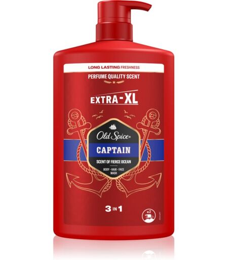 Old Spice Captain, 1000 ml, Brusegeler og sæbe til mænd, Brusegelen Old Spice Captain er en nødvendig del af den daglige hygiejne. Den vasker huden over hele kroppen blidt og skånsomt, og tilfører den nødvendige fugt. Egenskaber: vasker huden og fjerner urenheder Skummer meget under vask giver friskhed og energi efter brug giver huden en følelse af komfort tilbage vasker håret og renser hovedbunden Brugsvejledning: Anvendes i brusebadet eller i badet på hele kroppen. Skyl derefter med varmt vand. Egner sig til hverdagsbrug. ...