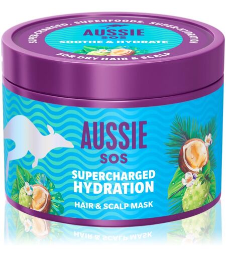 Aussie SOS Supercharged Hydration Lindrende fugtgivende maske til hår og hovedbund 500 ml