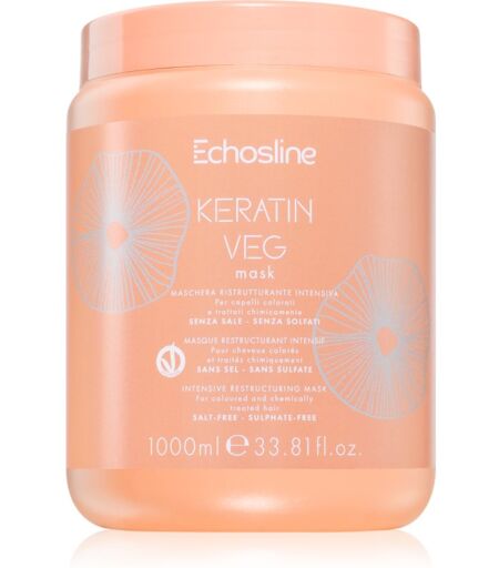 Echosline Keratin veg Mask Intensiv nærende maske til tørt og porøst hår med aminosyrer 1000 ml