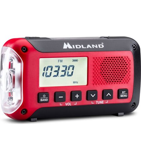 Midland ER250 BT Bluetooth nødradio Midland ER250 BT Bluetooth nødradio er den ultimative løsning til enhver nødsituation. Denne alsidige enhed kombinerer en kraftfuld nødradio med moderne Bluetooth-teknologi, så du altid kan være forberedt og forbundet, uanset hvor du er. Perfekt til udendørs eventyr, campingture eller nødsituationer, hvor kommunikation og information er afgørende.Midland ER250 BT Bluetooth nødradio er en pålidelig og multifunktionel enhed, der sikrer, at du altid er forberedt. Uanset om det er en nødsituation eller en almindelig dag ude i naturen, giver denne nødradio dig ro i sindet. Specifikationer: Produkttype: Nødradio Farve: Rød / Sort Opladning af solpanel og Håndsving: Ja Teleskopantenne til FM-radio: Ja LED lommelygte: Ja Morsekode SOS funktion: Ja Eksternt stik til headset: Ja Powerbank Funktion: Ja USB-opladningsstik: Ja Li-Ion batteripakke: Ja Radio AM/FM: Ja Digitalt ur: Ja Bluetooth: 6dBm Lydstyrke: >300mW Mål (BxHxD): 15 x 7,9 x 4,3 cm Vægt med batteri: 324 gram ...