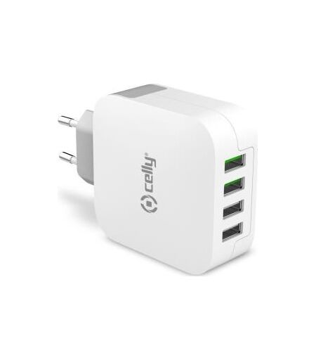 Celly Strømforsyningsadapter Med 4 Usb Porte, Hvid