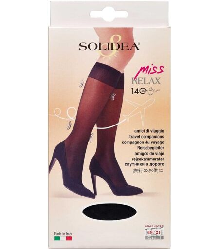 Solidea Miss Relax 140 Sheer Knæstrømpe Sort Small Medicinsk udstyr 1 par