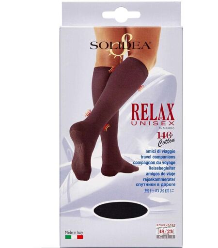 PRODUKTET SOLIDEA KNÆ RELAX UNISEX ER KLASSIFICERET SOM MEDICINSK UDSTYR. Solidea Relax unisex er en bomulds knæstøttestrømpe til damer og herrer, 140 Denier, med kraftig gradvis kompression og antistress-indlæg i svangen. Kompression: 18-23mmHg, kraftig linie - når problemerne er blevet mere omfattende. Anvendelse: Strømpen er en kompressionsstrømpe, som også er velegnet til rejsestrømpe. ...