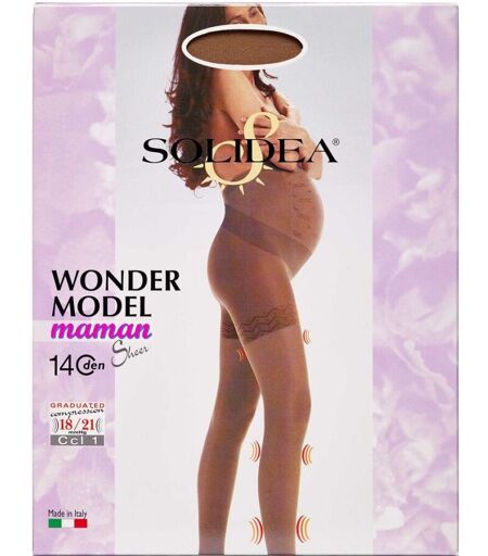 PRODUKTET SOLIDEA WONDER MODEL MAMAN 140 CAMEL ER KLASSIFICERET SOM MEDICINSK UDSTYR. Solidea Wonder Model Maman 140 er en elegant og raffineret støttestrømpe med anatomisk buksedel til gravide. Den anatomiske buksedel giver optimal støtte til den gravide mave takket være den elastiske støtteforstrækning, som omkredser maven. Kompression: 18-21 mmHg, kraftig linie, når problemet er blevet mere omfattende. Anvendelse: Srømpen anvendes som kompressionsstrømpe og er velegnet som rejsestrømpe. Materiale: 80% Polyamid20% Elasthan Tip: Den gradvise kompression på benene udgør en effektiv beskyttelse mod hævede ankler og væskeophobninger. Strømpen mindsker også belastningen og giver øget velvære for fødderne på grund af et blødt antistress-indlæg i svangen. Findes også i: Hele solidea knæ relax unisex (sort/camel/natur) seriens størrelseskema: .SMLXLXXLSkostørrelse:35-3738-4041-4344-4647-49Omkreds under knæet i cm29-3432-3738-4341-4644-49Omkreds ved ankelknoglen i cm19-2120-2223-2525-2829-32 Solidea buks venere 70 serien (sort/camel), Solidea buks venere 40 serien (sort/camel) og Solidea lår seriens (rosa/sort/camel/sort)størrelsesskema: Vægt/højde455055606570758085105145/150 cmSSS.......150/155 cmSSS/MMM..... 155/160 cm SSMMM/MLMLML...160/165 cmSMMMMLMLML/LLLL165/170 cm.MMMLMLMLLLLL170/175 cm...MLMLLLL..175/180 cm.....LL.. ...
