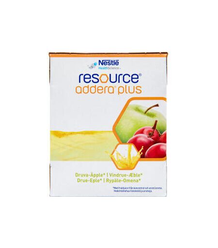 En saftbaseret og energirig ernæringsdrik med protein, baseret på frugtjuice. Resource Addera Plus er en læskende og letdrikkelig ernæringsdrik, der med fordel kan anvendes som et næringsrigt alternativ til vand, saft og som måltidsdrik. Den ...
