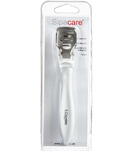 Sipacare fodhøvl med udskifteligt blad. Anvendes til fjernelse af det yderste lag hård og død hud på hælene, hvorefter huden kan files med en fodfil. Dosis og Anvendelse Fodhøvlen skal anvendes med stor forsigtighed - og kun til fjernelse af det yderste lag hård hud. Når det yderste lag hård hud forsigtigt er fjernet, kan behandlingen afsluttes med et fodbad, hvorefter huden files med en fodfil. Bladene er meget skarpe. Efter brug bør bladet skiftes, og fodhøvlen rengøres grundigt. Advarsel: Vær meget forsigtig både ved anvendelse af fodhøvlen og ved skift af bladene. Uforsigtig eller forkert brug kan medføre alvorlig skade. ...