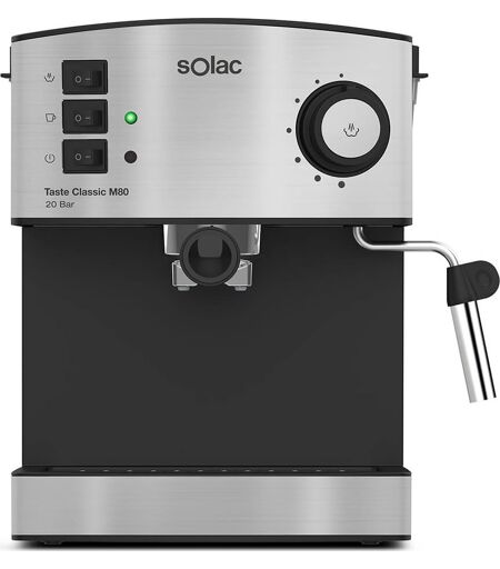 Solac Taste Classic M80 Espressomaskine, inox Nyd en lækker kop kaffe med Solac Taste Classic M80 espressomaskinen i stålfarve! Den har en kraftfuld italiensk pumpe med 20 bars tryk, der sikrer den perfekte espresso med rig crema, fantastisk smag og uimodståelig aroma. Espressomaskinen har en effekt på 850W, er let at bruge med automatiske slukningsfunktioner, en aftagelig tank på 1,6 liter og tydelige temperatur- og driftsindikatorlys. Den er alsidig og passer til både malet kaffe og kaffepuder, og resultatet er en cremet og intens kaffeoplevelse.Tilbehør inkluderer: Filterholder og 2 filtre til 1 eller 2 espressoer. Specifikationer: Produkttype: Espressomaskine Farve: Rustfrit stål Effekt: 850 W Pumpe: 20 bar Vandtank (kapacitet): 1,6 L Funktioner: Espresso, dobbelt espresso / to kopper, varmt vand, damp Drypbakke: Ja Kopvarmende overflade: Ja Automatisk sluk: Ja Skridsikre fødder: Ja Certifikater: CE, RoHS og BPA fri Kabellængde: 80 cm Dimensioner (HxBxD): 30 x 21 x 26 cm Vægt: 2,8 kg ...