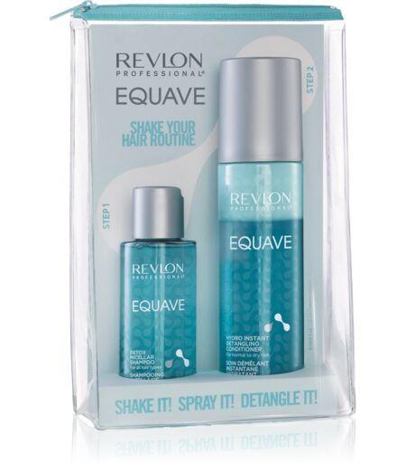 Revlon Professional Equave Shake Your Hair Routine, 2 stk., Leave-In Conditionere til kvinder , Sættet indeholder: Revlon Professional Equave Detox Micellar Shampoo Micellar Shampoo med afgiftende effekt 100 ml Revlon Professional Equave Hydro Nutritive Leave-in fugtgivende balsam på spray 200 ml Egenskaber: har en genopbyggende virkning håret skinner og er blødt at røre ved forbedrer hårets elasticitet gør det nemmere at rede og efterfølgende at sætte giver intensiv fugt ...