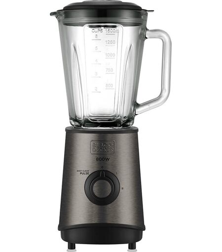 Black & Decker 800W BlenderLav hurtigt gode shakes og smoothies. Dens multi-speed og pulsfunktioner blander, hakker og skærer med perfekt fleksibilitet og til den ønskede konsistens. 800 W effekt, glaskande og 4 blade i rustfrit stål betyder at den kan hakke alle former for mad, selv det hårdeste som is.Gradueret 1,5 liters glaskande med 50 ml målebæger i låget og påfyldningstud. Påfyldningstuden gør det muligt at tilføje ingredienser til røremaskinen med låget på, selv når den kører. Pulse & Easy Clean-funktion til en bedre blanding og lettere rengøring af kande og blade.Specifikationer:Produkttype: BlenderFarve: SortKapacitet: 1,5 L glaskandeEffekt: 800 WBlade: 4 blade i rustfrit stål ...