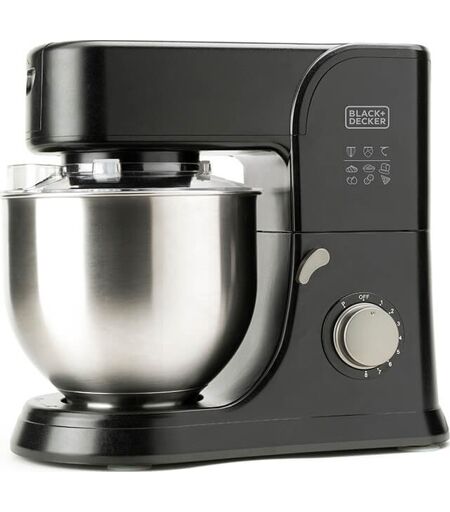 BLACK+DECKER Køkkenmaskine, 1000W, sortDette er en kraftfuld og brugervenlig køkkenmaskine, perfekt til at håndtering og æltning af store mængder af ingredienser. Tilpas dens kraft til dine behov med dens 8-trins hastighedskontrol eller brug den kraftfulde Turbo-funktion til stor og tung dej.Specifikationer:Robust 5,2L skål i rustfrit stål8 hastighedsregulator + turbo funktionPlanetarisk blandningssystem til homogen og luftig dejTransparent stænkskærmSkridsikre fødder for total stabilitetKraftfuld køkkenmaskine på hele 1000WMed sin 1000W motor er denne køkkenmaskine perfekt til at blande og ælte mange ingredienser. Derudover har dens modstandsdygtige skål i rustfrit stål, der er velegnet til vask i opvaskemaskinen, en kapacitet på 5,2L til at forberede alle dine blandinger.Den tilpasser sig perfekt till alle dine opskrifter takket være sin 8-hastighedsregulator + sin kraftfulde Turbo-funktion. Stille selv ved i topfart. Køkkenmaskinen har et planetariskt blandningssystem til en komplet, homogen og ensartet blanding, der giver dig mulighed for at tilberede dej og blandinger på en professionel måde. Med kraftige metalgear, der sikrer, at den holder fra dag ét og en gennemsigtig skænkskærm. Skridsikre fødder for total stabilitet på bordpladen. ...