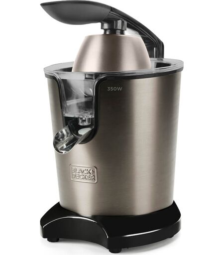 Black & Decker Juicer, 0,65 LDu presser saften fra alle dine yndlingscitrusfrugter hurtigt, rent og let med citruspressen fra Black + Decker. Dens professionelle motor med 350W effekt giver en hurtig og præcis ekstraktion af saften fra alle citrusfrugter. Det er meget let at rengøre, fordi alle dets komponenter er aftagelige og tåler opvaskemaskine.Det faktum, at det er en citruspresse med en håndtag, betyder, at der skal udøves mindre tryk på frugten og derved opnå den maksimale mængde saft. Citruspressen aktiveres automatisk når håndtaget udøver tryk på frugten.For at gøre håndteringen mere behagelig og stabil for dig har håndtaget et blødt greb, og basen har sugekopper til at fastgøre det til din bordplade. Derudover har juiceren 2 kegler i forskellige størrelser, så du kan presse alle typer citrusfrugter, herunder appelsiner, lime, citroner og grapefrugt.Dens hældetud har to forskellige systemer. Et system, der giver dig mulighed for at opbevare juice i beholderen på 650 ml, eller du kan vælge den kontinuerlige hældning, der går direkte i glasset, og du vil kunne stoppe det, når du har den ønskede mængde saft. Pressen har også et anti-dryp system, så du ikke frigiver et dryp under processen.For at gøre rengøringen lettere for dig, er filtrene og keglerne på den elektriske citruspresser helt aftagelige og kan vaskes i opvaskemaskinen. Alle komponenter er BPA-fri.Specifikationer:Produkttype: SaftpresserFarve: GråKapacitet: 0,65 L ...