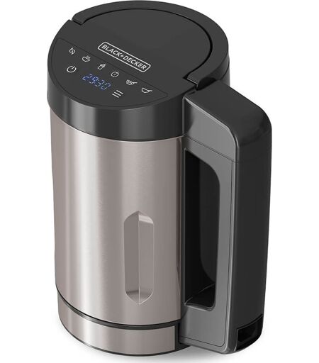 BLACK+DECKER Suppemaskine, 900W Nyd den nemme vej til velsmagende og sund hjemmelavet suppe med Black & Deckers suppemaskine. Denne 900W maskine i rustfrit stål har en kapacitet på 1,6 liter, perfekt til familie og venner. Den er udstyret med programmer for blanding, opvarmning, smoothies, kompot, chunky og smooth suppe samt en memory funktion. Beholderen og klingen af rustfrit stål sikrer holdbarhed, mens det intuitive kontrolpanel med et 4-cifret display gør betjeningen enkel og brugervenlig. Maskinen er desuden BPA-fri, hvilket garanterer sund og sikker madlavning. Produkttype: Suppemaskine Farve: Grå/sort Kapacitet: 1,6 L Effekt: 900 W Funktioner: Digitalt display med 7 programmer Kabellængde: 0,8 m Vægt: 2,5 kg ...