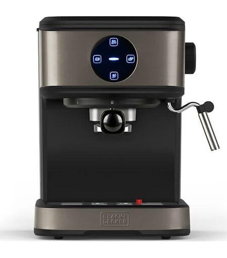 Black & Decker Espressomaskine Nyd espresso af fremragende kvalitet og konsistens med denne espressomaskine fra Black + Decker. En højtydende espressomaskine fra malede bønner, der giver en mere cremet espresso med forbedret smag og aroma takket være sin italienske 20 bar pumpe og dets præ-infusion og ekstra creamsystem. Og med en elegant fingeraftryksfri finish i rustfrit stål. Præ-infusionssystemet forbereder og fugter kaffen så den giver en forbedret aroma, farve og smag. Til dette fremragende system føjes Extra Cream-systemet, en silikonemembran anbragt i filteret, der gnider mod kaffen for at producere ekstra cream. Så sammen med sin kraftfulde italienske pumpe med et tryk på 20 bar vil du kunne nyde en lækker espresso. Og i det mindste med sin hurtige start takket være dens 850W effekt. Via den oplyste touchskærm kan du vælge 1 eller 2 kopper espresso og dampfunktion. Espressomaskinen har 2 kurve i rustfrit stål til et eller to shots espresso og automatisk stop af kaffen i henhold til standardmængderne for 1 eller 2 espressoer, da denne mængde også kan programmeres efter din smag. Til kvaliteten af espresso føjes kvaliteten af maskinens design og ekstra funktioner. Black+Deckers-espressomaskinen har en elegant fingeraftrykssikker finish i rustfrit stål med en kopbrik på toppen for at holde kaffekopperne varme og med en drypbakke, der let kan fjernes og aluminiumsdræn. Den indeholder også en måleske til malet kaffe, en 1,5 liters tank med en synlig vandstand og fuld aftagelig for let påfyldning og med skridsikre fødder for ekstra stabilitet. Specifikationer: Produkttype: Espressomaskine Farve: Sort Effekt: 850 W Pumpe: 20 bar Størrelse: 27 x 20,5 x 29 cm ...