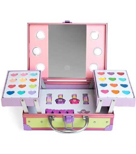 Martinelia Super Girl LED Mirror Case er en farverig og underholdende makeupkuffert, designet specielt til små piger, som elsker at eksperimentere med makeup. Kufferten er prydet med et cool Super Girl-tema og inkluderer et praktisk indbygget LED-spejl, der gør det nemt for børnene at se, mens de lægger makeup. Denne makeupkuffert giver børnene en sjov og kreativ oplevelse, hvor de kan lege med farver og udtryk, og det hele kommer samlet i en fin kuffert, der let kan tages med rundt. Æsken indeholder: LED-spejl 12 stk. Øjenskygger i forskellige farver 13 stk. Lipgloss 2 stk. Vandbaserede neglelakker 2 stk. Mini-læbestifter 1 stk. Tåseparator OBS. USB-kabel til LED lyset medfølger, og ligger i øverste del, under øjenskyggepaletten. ...