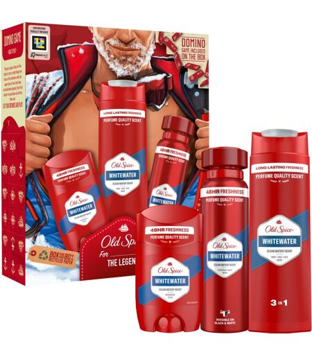 Old Spice Whitewater Alpinist Set, , Kropssæt til mænd til mænd, Alt til at få en hud, der ser flot ud, i én pakke. Kosmetiksættet Old Spice Whitewater Alpinist Set indeholder ikke ét, men flere produkter, der hjælper med at skabe eller berige den daglige hudplejerutine, og som vil glæde dig eller dine nærmeste som en gave. Sættet indeholder: Old Spice Whitewater Deodorant Stick 50 g Old Spice Whitewater Spray deodorant 150 ml Old Spice Whitewater Fugtgivende brusegel 250 ml Brugsvejledning: Brug alle produkterne i kosmetiksættet som angivet på etiketten. ...