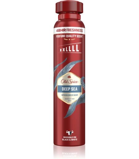 Old Spice Deep Sea, 250 ml, Deodoranter og antiperspiranter til mænd, Produkt Old Spice Deep Sea er en nødvendig hjælp hver dag i kampen mod sved. Egenskaber: beskytter mod en ubehagelig lugt efterlader en langvarig frisk følelse beskytter effektivt mod sved giver en langvarig følelse af komfort irriterer ikke huden efterlader ikke pletter på tøjet produkt er specielt udviklet til det, en mandehud har brug for Ingredienser: uden alkohol uden aluminiumssalt Brugsvejledning: Påføres den rene og tørre hud under armene. Ryst godt før brug. Velegnet til hverdagsbrug. ...