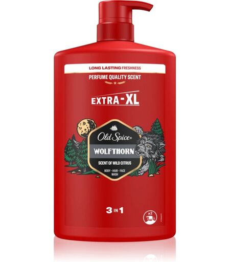 Old Spice Wolfthorn, 1000 ml, Brusegeler og sæbe til mænd, Showergelen Old Spice Wolfthorn gør den nødvendige hverdagshygiejne til en enestående forfriskende oplevelse. Egenskaber: giver friskhed og energi efter brug vasker huden og fjerner urenheder Brugsvejledning: Anvendes i brusebadet eller i badet på hele kroppen. Skyl derefter med varmt vand. ...