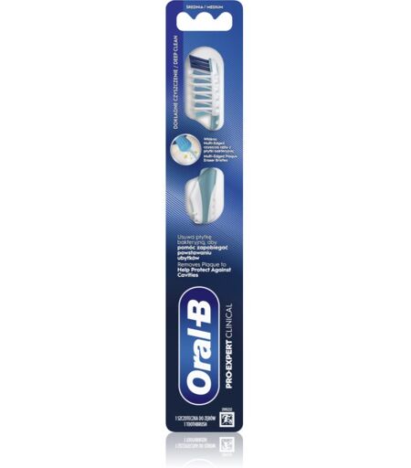 Oral-B Pro-Expert Clinical, 1 stk., Tandbørste til mænd, Tandbørste Oral-B Pro-Expert Clinical holder dine tænder raske og flotte. Fjerner tandplak effektivt og hjælper med at forebygge karies. Egenskaber: fjerner tandplak polerer tænders overflade kommer ind på steder, der er vanskelige at nå også egnet til personer med sensitive tænder og tandkød mellembløde børstehår børster også tænder de steder, hvor er det svært at komme til reducerer uønsket misfarvning og pletter på tænderne Brugsvejledning: Påfør tandpasta på tandbørste, børst tænder og mund. Skyl grundigt. ...