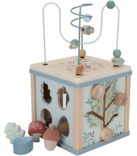 Ge dig ut på äventyr och utforska alla sidor av denna underhållande aktivitetskub. Varje sida har vackra Forest Friends-illustrationer och presenterar en rolig aktivitet, inklusive formsortering, snurrande kugghjul, pussel och en utmanande pärllabyrint på toppen. Genom varje engagerande uppgift kommer ditt barn att förbättra sin finmotorik och inspireras att släppa loss sin kreativitet. Denna aktivitetskub stimulerar inte bara barnens nyfikenhet, utan garanterar också timmar av lekfulla upptäckter. Alder: 18 m+ Produktmått: 20 x 20 x 40 cm ...