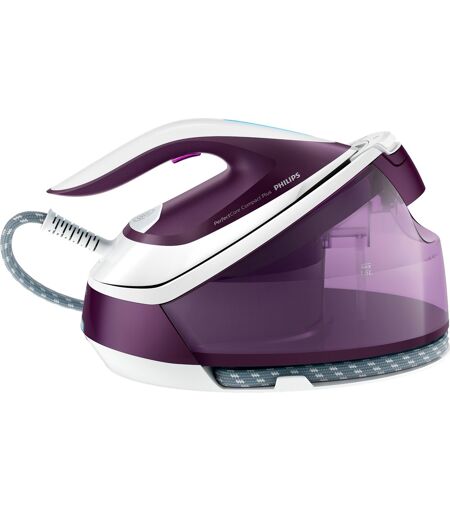 Philips PerfectCare Compact Plus GC7933/30 dampstation er en revolutionerende tilføjelse til dit hjem. Med sin innovative OptimalTEMP-teknologi behøver du ikke længere bekymre dig om temperaturindstillinger og kan stryge alle stoffer sikkert. Vandtanken har en kapacitet på 1500 ml og kan fyldes op når som helst, mens enheden er i drift. Opvarmningstiden er kun 2 minutter, så du kan begynde at stryge med det samme. Med en konstant dampudgang på 120 g/min og et ekstra dampskud på imponerende 450 g/min kan selv genstridige folder fjernes let. Den vertikale strygefunktion gør det nemt at stryge hængende tøj, og SteamGlide Plus-strygesålen giver en glat strygning oplevelse. Sikkerhedsafbrydelse og transportlås giver ekstra sikkerhed. Denne brugervenlige dampstation leveres komplet med en Calc-Clean opsamlingsbeholder for at gøre rengøringen lettere. ...