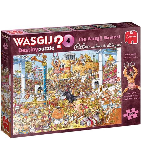 Wasgig Retro Destiny no 4, The Wasgij Games. Wasgijs puslespil er ikke helt som almindelige puslespil. Her skal du ikke pusle med, hvad du ser på billedet, men hvordan det tilsvarende billede ville se ud i fremtiden. Dette kræver både fantasi og dygtighed! Motiv: The Great Wasgij Games! Mål: ca 68 x 49 cm Antal styk: 1000 Producent: Jumbo Rec alder 12+ Anbefales ikke til børn under 3 år. ...