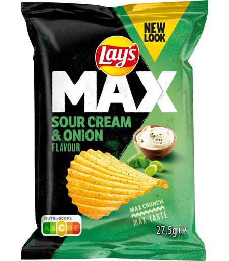 Lay's MAX Sour Cream & Onion kartoffelchip-snack Forkæl dine medarbejdere, kollegaer eller dig selv med en lille snack i den travle hverdag. Chipsposerne sælges i hele kasser af 20 stk. Indhold: 27,5 gram Smag: Sour Cream & Onion Antal pr. kolli: 20 poser ...