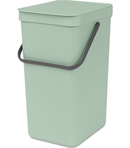 Brabantia Sort&Go – smart og praktisk kildesorteringsspand med låg Brabantia Sort&Go affaldsspanden er en god kvalitetsspand med et enkelt og moderne design. Spanden er en del af Brabantias affaldssorteringskoncept, hvor affaldsspandene kan bruges til en smart og praktisk organisering af din kilde- og affaldssortering. Spandene kommer i flere forskellige størrelser og farver, så der kan anvendes mange forskellige kombinationsmuligheder for en optimal affaldshåndtering. Farve: Grøn Model: Jade Green Kapacitet: 16 L Materiale: Plast Bruger Brabantia affaldspose D Vægmonteringsbeslag medfølger Mål (HxBxD): 40 x 20,5 x 27 cm Cradle-to-Cradle certificeret, silver level Affaldssorteringsspand med mange muligheder Affaldsspanden har et moderne enkelt og kompakt design, der let kan kombineres eller stables med andre Brabantia spande fra Sort&Go-serien, så dit affaldssorteringssystem kan pladsoptimeres. Dertil kan Sort&Go spanden bruges som både fritstående spand og væghængt spand, men kan også med stor fordel bruges som indbygningsspand i f.eks. køkkenskabet eller -skuffen. Smart sorteringskoncept Sort&Go spandene findes i forskellige størrelser og farver, hvilket gør dem velegnede at bruge sammen i forskellige kombinationer, for en optimal affaldssortering. De mindre spande er b.la. velegnede til køkkenaffald, madaffald og bioaffald, hvorimod de større spande er gode til f.eks. plastik, pap, papir, glas eller restaffald. Opnå det perfekte match mellem affaldsspand og pose Ved at bruge en pose som passer perfekt til din affaldsspand, får du optimal udnyttelse af pladsen, og et pænt rent look. Der sidder en smart bogstavskode på indersiden af alle Brabantias affaldsspandes låg, så du nemt kan se hvilken original Brabantia affaldspose som passer til. ...