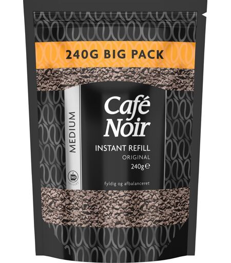 Café Noir Instant Refill Medium – 240g Big Pack Nyd en fyldig og rund kaffeoplevelse med Café Noir Instant Refill Medium. Denne frysetørrede kaffe kombinerer en afbalanceret friskhed og sofistikeret eftersmag, som gør hver kop til en sand nydelse. Perfekt til travle dage, hvor du ikke vil gå på kompromis med kvaliteten. Brug den i instantmaskiner eller til oprøring i en kop – nemt og hurtigt! Specifikationer: Type: Frysetørret instant kaffe Intensitet: Medium Vægt: 240 g Oprindelse: Syd- og Centralamerika ...