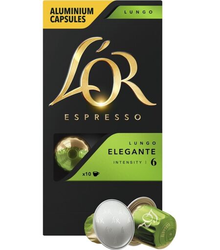 L'Or Lungo Elegante Kaffekapsler, 10 stk. Oplev den raffinerede smag af L'Or Lungo Elegante – en harmonisk kaffe med subtile noter af citrus og blomster. Denne elegante lungo leverer en balanceret smagsoplevelse med en intensitet, der vækker sanserne uden at overdøve. Perfekt til en lækker kop på 125 ml. L'Or Lungo Elegante kaffekapsler er designet til at passe alle originale og klassiske Nespresso-kapselmaskiner. Med aluminiumskapsler får du altid en frisk og aromatisk kaffe. Smag: Lungo Elegante 10 kapsler i en æske Nespresso kompatibel til originale maskiner med små kapsler Smagsintensitet (skala 1-12): 6 Bønnetype: Arabica Mellemristet Aluminiumskapsler Bemærk! Disse små kapsler er kun kompatible med de oprindelige Nespresso kapselmaskiner til mindre kopper kaffe og passer derfor ikke til de nyere Vertuo maskiner til store kopper kaffe. L'Or - fransk kvalitetskaffe siden 1922 Ambitionen for L'Or har altid været, at tilbyde verdens bedste kaffe. I 2010 kom L'Or på det internationale marked, med lanceringen af L'Or Espresso kaffekapsler. Kapslerne er 100% kompatible med Nespressos originale kapselmaskiner til små kapsler. Idag fortsætter L'Ors kaffe med at forføre smagsløg over hele verden - prøv en kop, og nyd den fængslende gode, multisensoriske oplevelse som kaffen i guldstandard leverer. ...