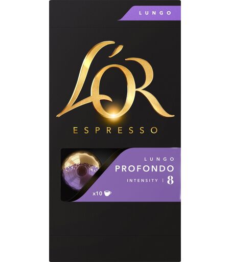 L'Or Lungo Profondo Kaffekapsler, 10 stk.Nyd en ekstra god kop kaffe med L'Or Lungo Profondo. Denne kaffe skruer op for lyden med en intens og krydret aroma, toner af ristede mandler og fristende lakrids, afrundet af et glitrende, bronze farvet lag crema.Som navnet antyder, bør L'Or Lungo Profondo nydes som en lungo (125 ml).L'Or Lungo Profondo kaffekapslerne kan anvendes i alle originale og klassiske Nespresso kapsel maskiner til små kapsler. Med kapslerne er du altid sikret en lækker friskbrygget kop kaffe.Smag: Lungo Profondo10 kapsler i en æskeNespresso kompatibel til originale maskiner med små kapslerSmagsintensitet (skala 1-12): 8Bønnetype: ArabicaMørkristetAluminiumskapslerBemærk! Disse små kapsler er kun kompatible med de oprindelige Nepresso kapselmaskiner til mindre kopper kaffe og passer derfor ikke til de nyere Vertuo maskiner til store kopper kaffe.L'Or - fransk kvalitetskaffe siden 1922Ambitionen for L'Or har altid været, at tilbyde verdens bedste kaffe. I 2010 kom L'Or på det internationale marked, med lanceringen af L'Or Espresso kaffekapsler. Kapslerne er 100% kompatible med Nespressos originale kapselmaskiner til små kapsler. Idag fortsætter L'Ors kaffe med at forføre smagsløg over hele verden - prøv en kop, og nyd den fængslende gode, multisensoriske oplevelse som kaffen i guldstandard leverer. ...