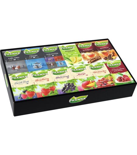 Pickwick Top 12 Te – Perfekt til Kontoret og Mødelokalet Giv medarbejdere og gæster en førsteklasses te-oplevelse med Pickwick Top 12, der samler 12 nøje udvalgte varianter i én praktisk pakke. Med 240 tebreve i alt får du en bred palette af smagsoplevelser, der passer til enhver smag – fra klassisk sort te til grøn te og frugtte. Denne alsidige løsning er ideel til kontorets tekøkken, mødelokalet eller arrangementer, hvor du vil tilbyde noget forfriskende og kvalitetsrigt. Indhold: 12 varianter á 20 tebreve Total antal tebreve: 240 Velegnet til: Tekøkkener, møder og gæstebesøg Varianter inkluderer: Sort te: English Breakfast, Earl Grey, Golden China, Indian Assam Grøn te: Mynte, Citron, Jasmin, Ren grøn te Frugtte: Citron, Skovbær, Jordbær, Tropisk frugt ...